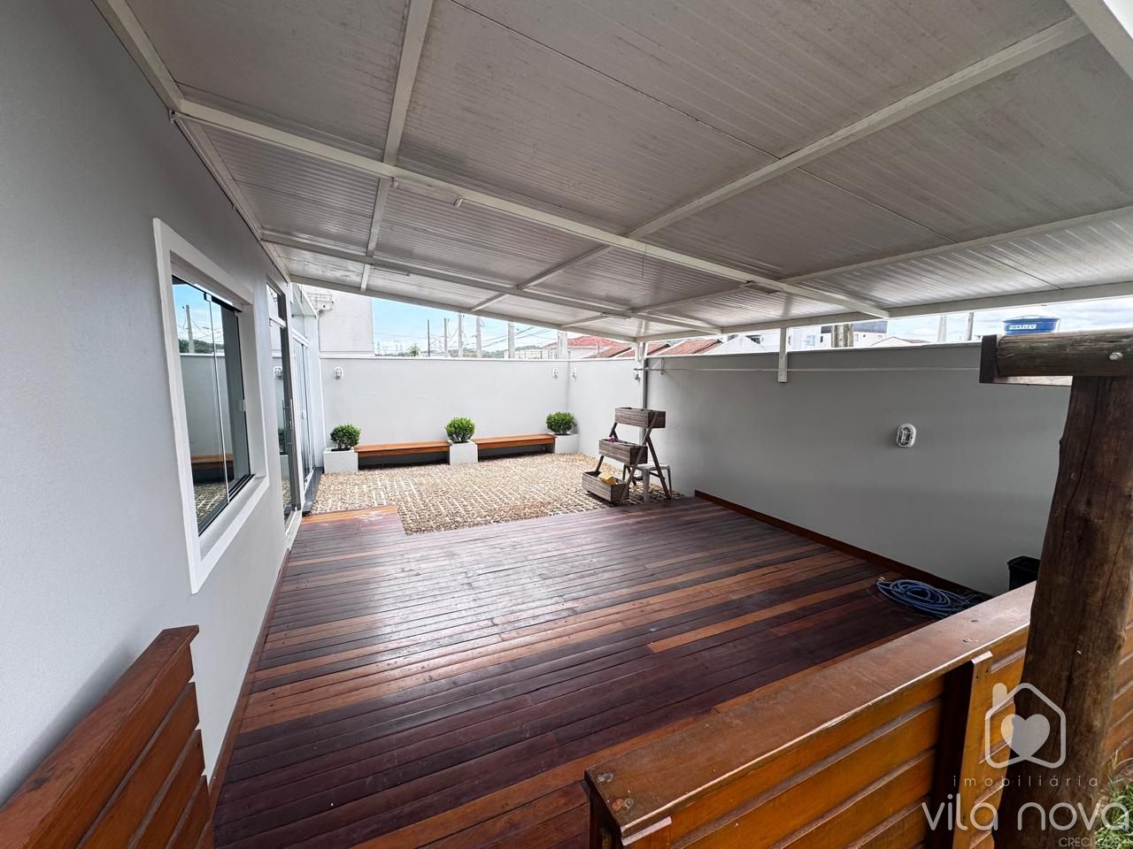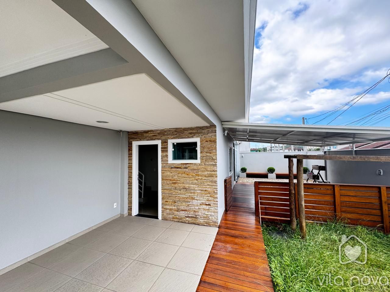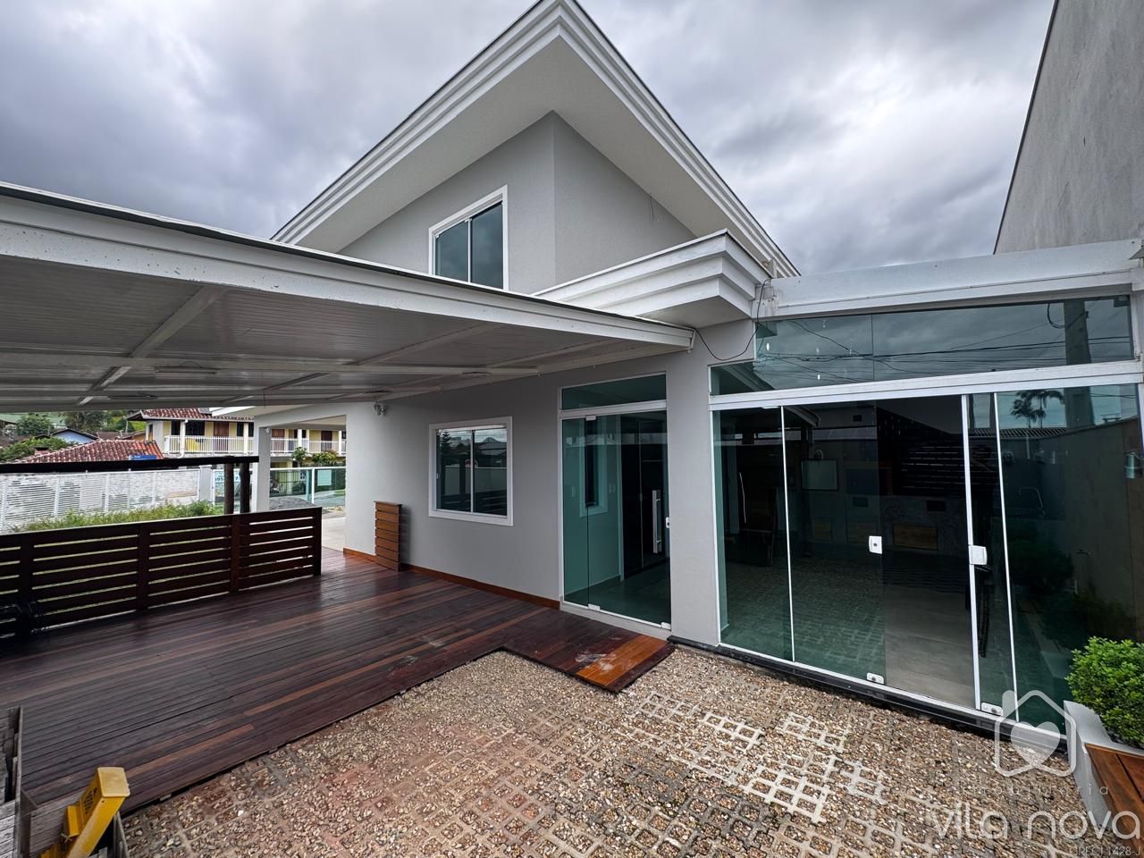 Maravilhoso Sobrado Esquina no bairro Vila Nova! Este imóvel medindo 130 m2 conta com 3 quartos sendo uma suíte, sala ampla, cozinha, 02 banheiros, área de festas super aconchegante com churrasqueira, forno e fogão a lenha, área aberta com deck, terreno amplo esquina. (Móveis planejados no quarto casal, sala, cozinha e área de festas). Acabamento de alta qualidade com porcelanato, gesso rebaixado. Com localização privilegiada, esta casa oferece conforto e praticidade para você e sua família. Aproveite essa chance única de adquirir seu novo lar em uma das regiões mais desejadas da cidade. Agende uma visita e venha conhecer de perto todos os detalhes deste imóvel!