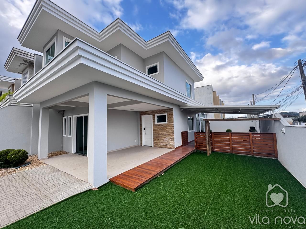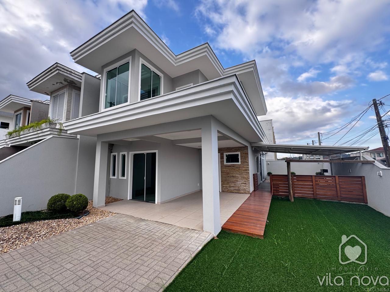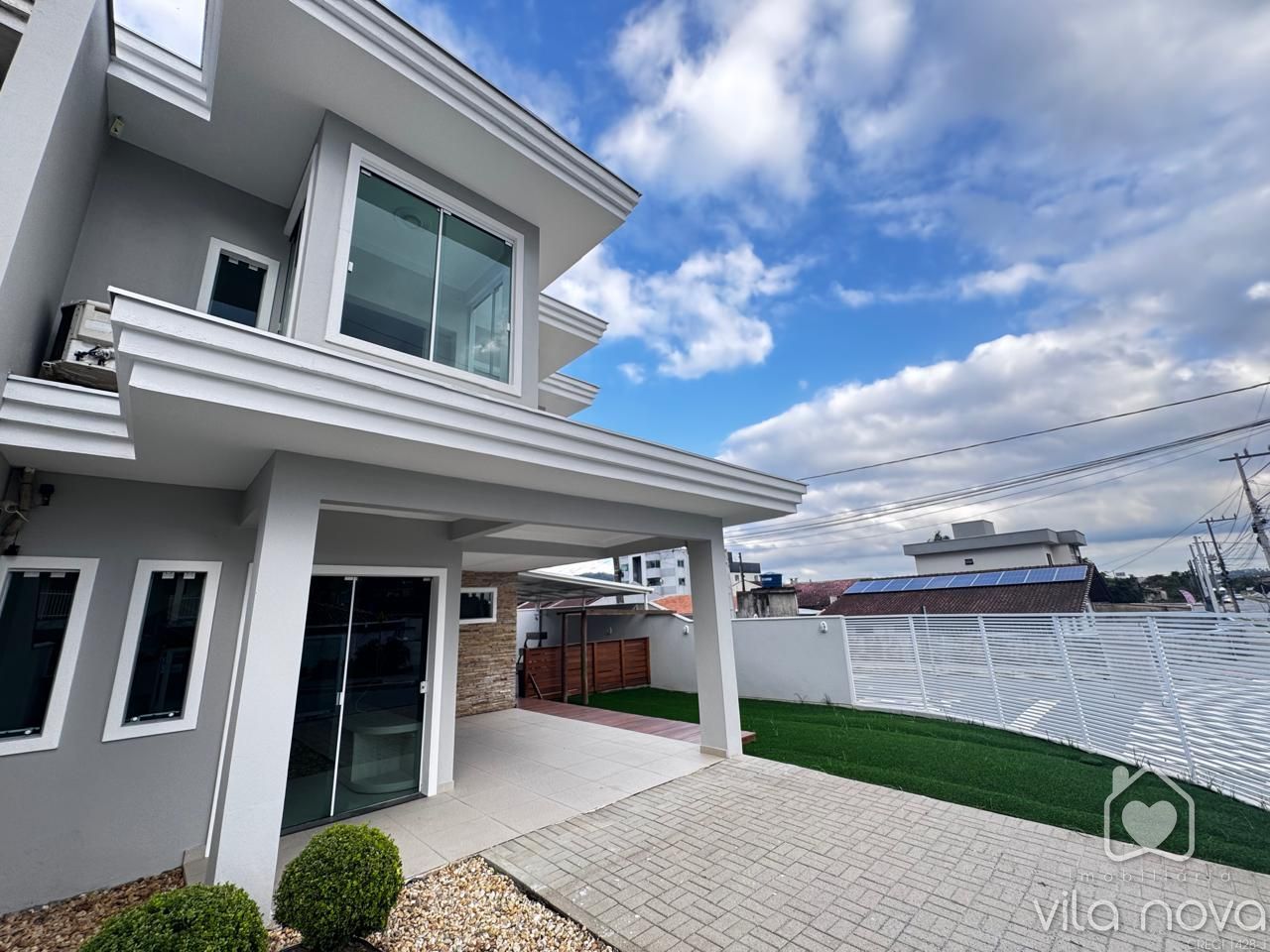 Maravilhoso Sobrado Esquina no bairro Vila Nova! Este imóvel medindo 156,88 m2 conta com 3 quartos sendo uma suíte, sala ampla, cozinha, 02 banheiros, lavabo, área de festas super aconchegante com churrasqueira, forno e fogão a lenha, área aberta com deck, terreno amplo esquina. (Móveis planejados no quarto casal, sala, cozinha e área de festas). Acabamento de alta qualidade com porcelanato, gesso rebaixado. Com localização privilegiada, esta casa oferece conforto e praticidade para você e sua família. Aproveite essa chance única de adquirir seu novo lar em uma das regiões mais desejadas da cidade. Agende uma visita e venha conhecer de perto todos os detalhes deste imóvel! Aceita Apartamento menor valor!