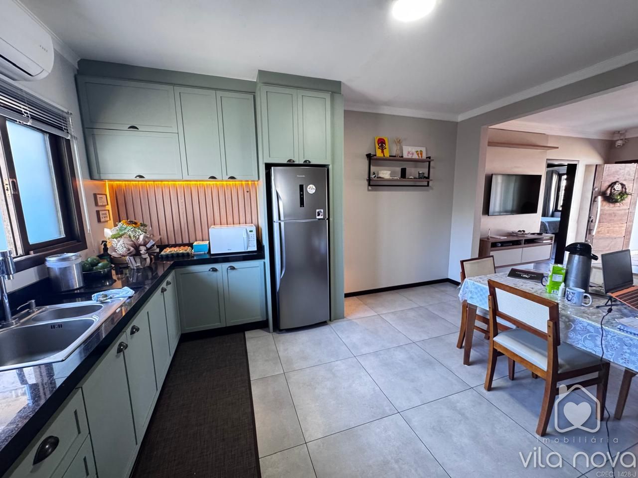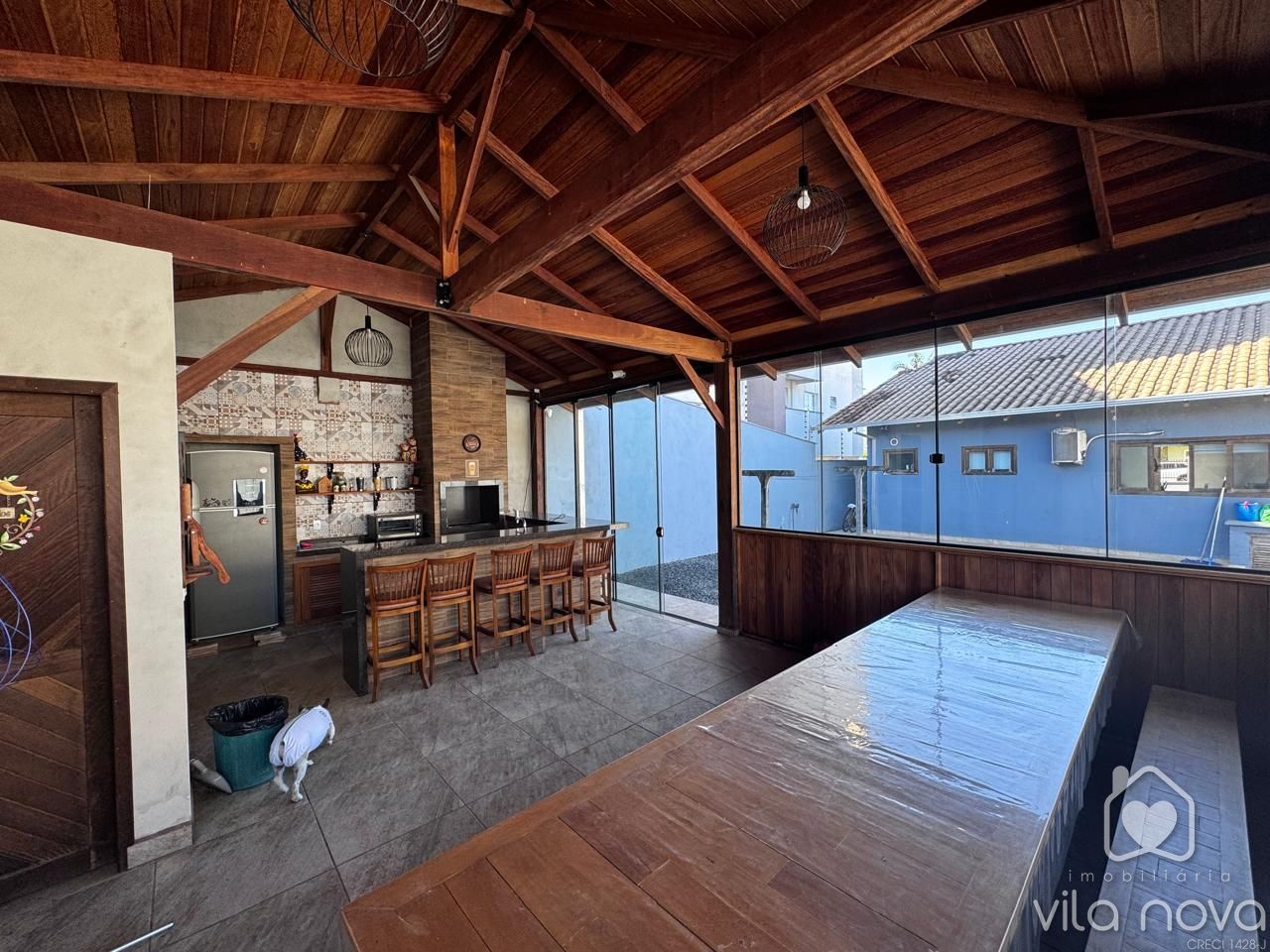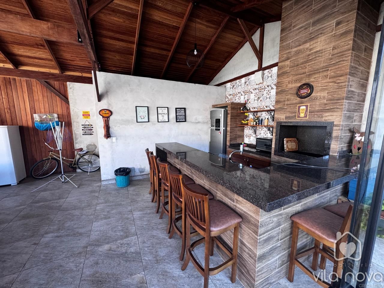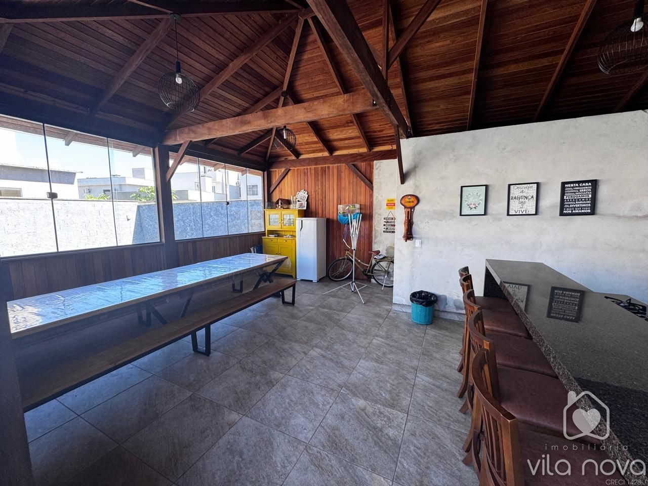 O imóvel conta com 2 dormitórios, sendo 1 suíte, Possui sala ampla, cozinha com móveis planejados, trazendo praticidade e ótimo aproveitamento do espaço. Uma área de festas fundos super aconchegante com churrasqueira e totalmente fechada em vidros.