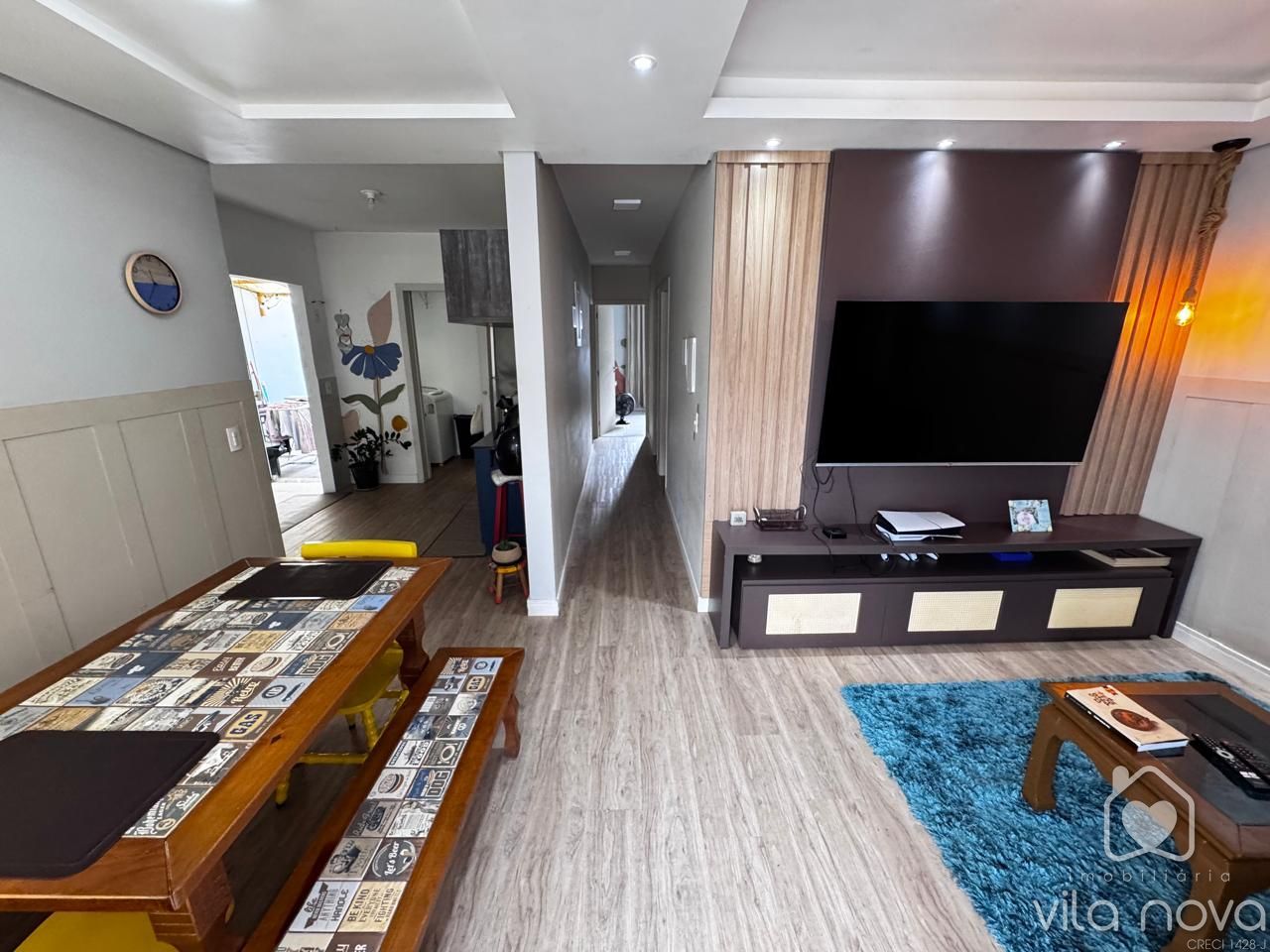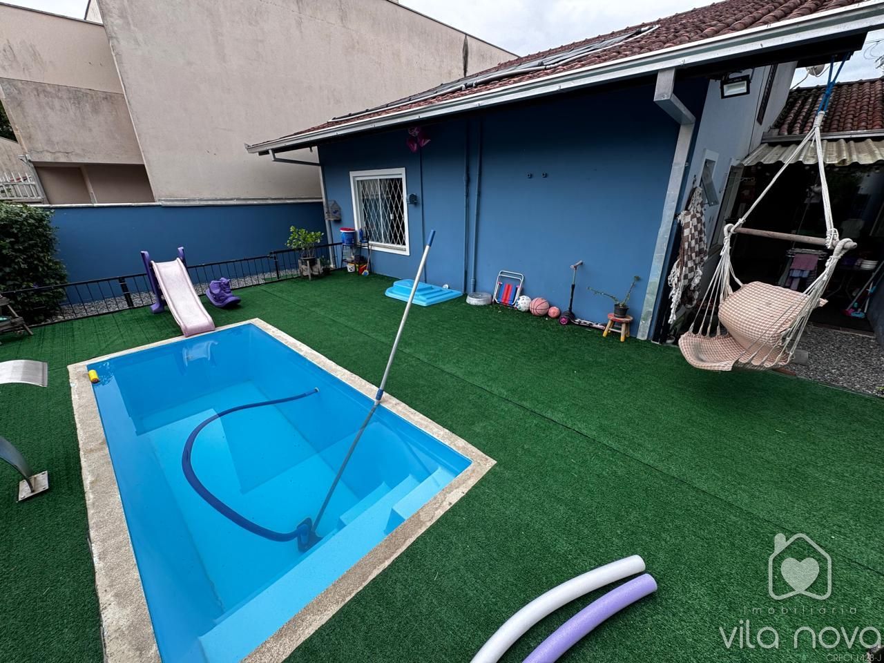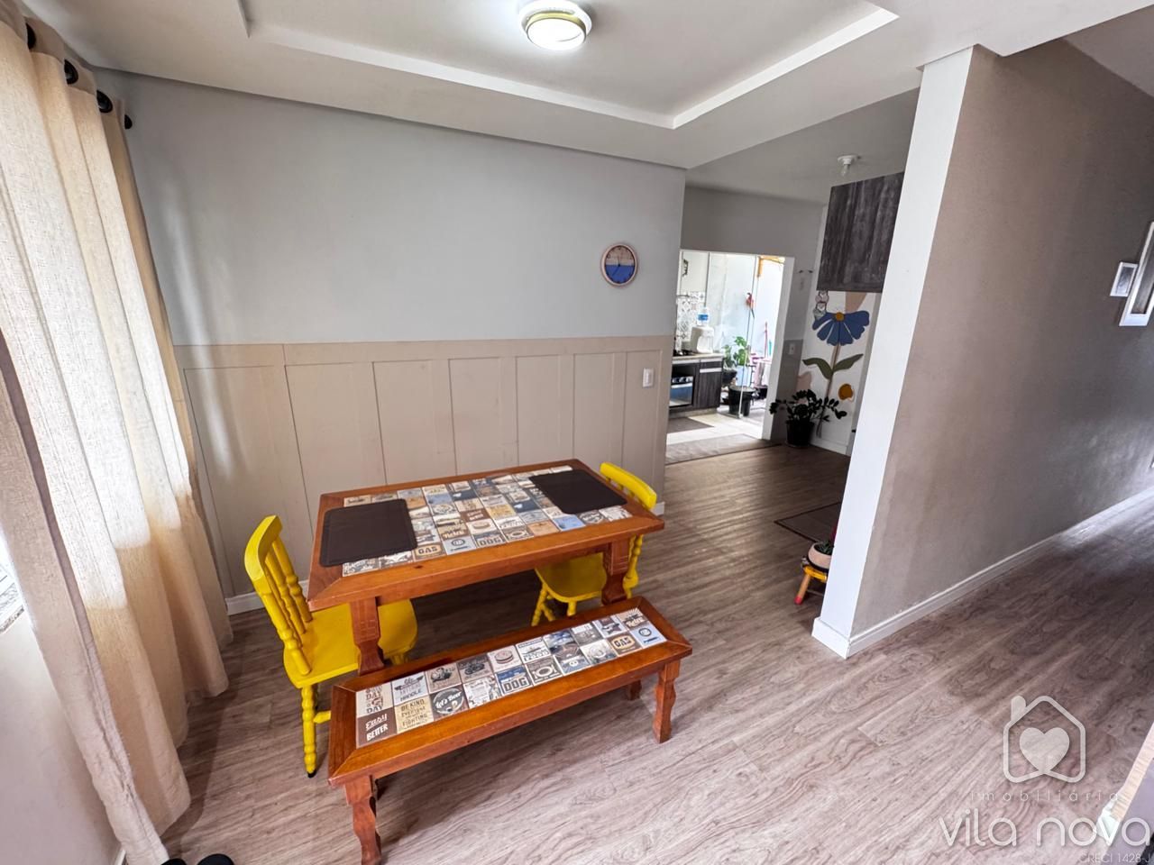 Casa Alvenaria com laje contendo suíte ampla + 02 dormitórios, sala com home, cozinha com móveis planejados, bwc social, área de serviço, churrasqueira, piscina, garagem, terreno 240 m2 murado, rua pavimentada em ótima localização no Vila Nova! Averbada - Aceita financiamento! Agende já uma visita!